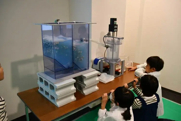 ミニ下水処理場ではどのように動いていくのかを観察できます。