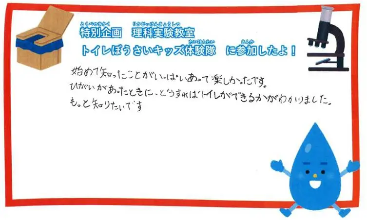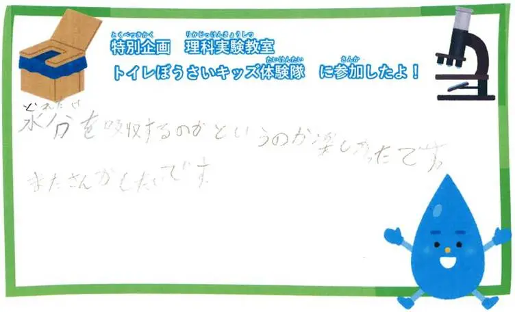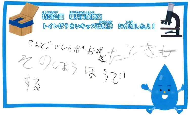 無臭元では今年初の試みのイベントとして、2019年11月10日(日)と12月1日(日)の2回、小学生を対象として、参加費無料の特別企画 理科実験教室「トイレぼうさいキッズ体験隊」を開催しました。