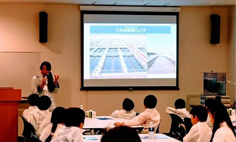 サイエンス倶楽部の先生を講師として、トイレで使った水が処理される仕組みについて学びました。